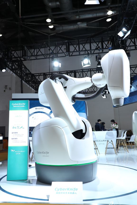 與此同時(shí),安科銳旗下的CyberKnife®射波刀放射外科手術(shù)機(jī)器人系統(tǒng)也在本屆CHINA MED上進(jìn)行了展示。作為目前世界上唯一的一款智能機(jī)器人放射治療設(shè)備,CyberKnife®射波刀適用于全身以及顱內(nèi)的放射外科治療,可以實(shí)時(shí)在放療過(guò)程中對(duì)腫瘤靶區(qū)進(jìn)行如影隨形的跟蹤和修正,治療精度達(dá)到亞毫米級(jí),在進(jìn)行高效治療的同時(shí),也能保護(hù)好正常的組織,為腫瘤患者提供全面、快捷、高效的精準(zhǔn)腫瘤放射外科/放療解決方案。