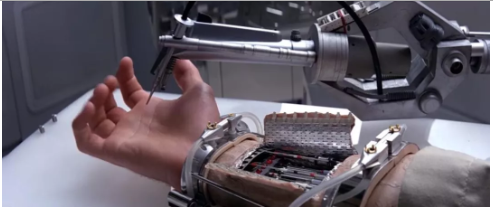 影視作品《星球大戰(zhàn)—帝國(guó)反擊戰(zhàn)》中,盧克·天行者斷臂后曾安裝過(guò)一款高科技假肢,圖片呈現(xiàn)的是機(jī)器對(duì)手臂進(jìn)行意識(shí)感知測(cè)試,而現(xiàn)在它終于成真了