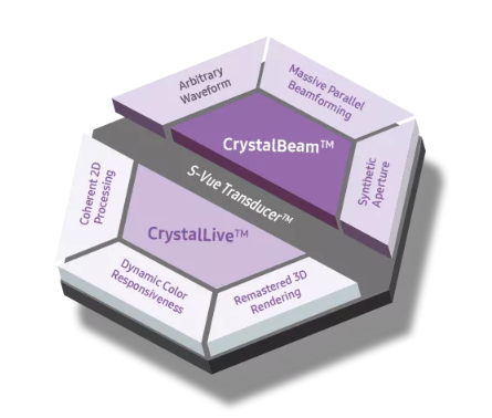 Hera i 10繼承并升級了全球首款5D超聲“三星麥迪遜WS80A”的“晶體結(jié)構(gòu)”成像理念,即將CrystalBeam?波束形成技術(shù)、CrystalLive?超聲成像引擎、S-Vue Transducer?視覺傳感器集于一身,提供更清晰的圖像。