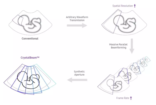 CrystalLive?是三星最新的超聲成像引擎,同時(shí)增強(qiáng)了2D圖像處理能力、3D渲染能力和彩色信號處理能力,能夠在復(fù)雜情況下提供出色的圖像性能,具備檢測外周血管、微循環(huán)血流的能力。