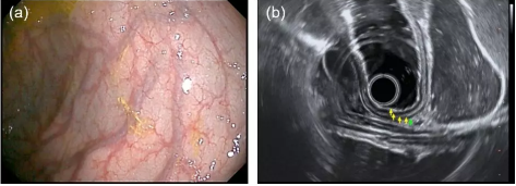 在系統(tǒng)層面,EG-UR5可搭配開立醫(yī)療全高清電子內(nèi)鏡系統(tǒng)HD-550和的超聲系統(tǒng)S60,為上消化道病變性質(zhì)診斷提供優(yōu)異的光學(xué)圖像和超聲圖像(圖3)。HD-550內(nèi)鏡系統(tǒng)搭載了國產(chǎn)首臺雙波長LED復(fù)合的內(nèi)窺鏡冷光源VLS-50T,不僅能夠提供高亮度白光觀察,還支持聚譜成像(SFI)和光電復(fù)合染色成像(VIST)兩種特殊光觀察模式。S60超聲系統(tǒng)除了支持常規(guī)超聲掃查模式,還提供彈性成像、造影成像等成像模式。