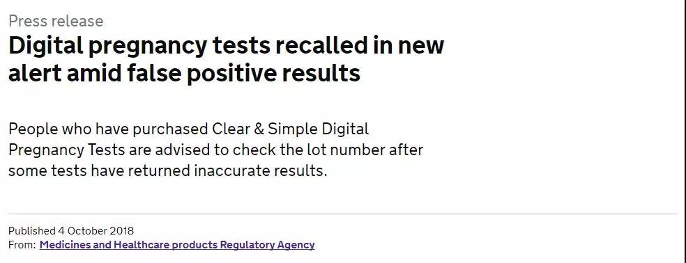 譯:MHRA醫(yī)療器械的臨床主任鄧肯·麥克弗森博士說(shuō):人們要重點(diǎn)檢查他們購(gòu)買的任何清晰和簡(jiǎn)單的數(shù)字妊娠測(cè)試的批號(hào),看看他們是否有來(lái)自受影響批號(hào)的產(chǎn)品。