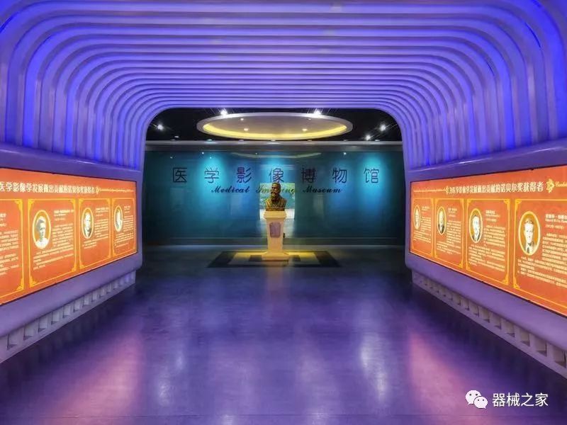 博物館序廳走廊兩側(cè)是為醫(yī)學(xué)影像做出突出貢獻(xiàn)的十位諾貝爾獎(jiǎng)獲得者簡(jiǎn)介,走廊中央是發(fā)現(xiàn)X射線并因此獲得首屆諾貝爾的德國(guó)科學(xué)家倫琴。