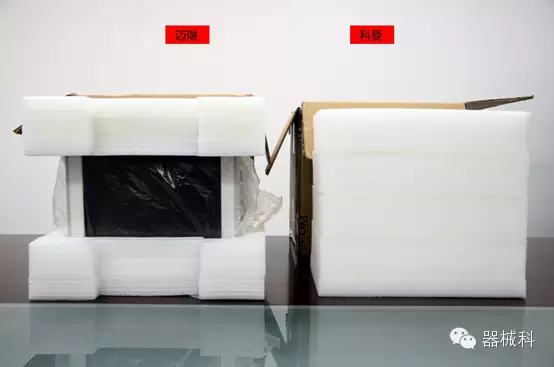 在儀器包裝上,科曼NC12和IPM12都是采用珍珠棉進(jìn)行包裝,但科曼NC12采用360°無(wú)死角的全包裹方式,雖然看起來(lái)臃腫,但是更能保證儀器在運(yùn)輸途中的安全;邁瑞IPM12采用半包裹的方式,看起來(lái)簡(jiǎn)潔清爽,但存在一定的安全隱患。
