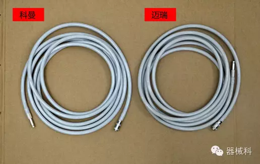 科曼采用防除顫分體夾式5導(dǎo)聯(lián)線,分纜長(zhǎng)度為L(zhǎng)A,RA,V導(dǎo)聯(lián)1米;RL,LL導(dǎo)聯(lián)1.6米;邁瑞采用防除顫一體扣式5導(dǎo)聯(lián),分纜統(tǒng)一為0.6米,主纜部分長(zhǎng)度一樣。導(dǎo)聯(lián)線上的分纜,容易損壞。如果只是分纜換了,分體式只用換掉分纜就行了,而一體式只能換掉附件,減少不必要的浪費(fèi),提高使用率,節(jié)約成本。