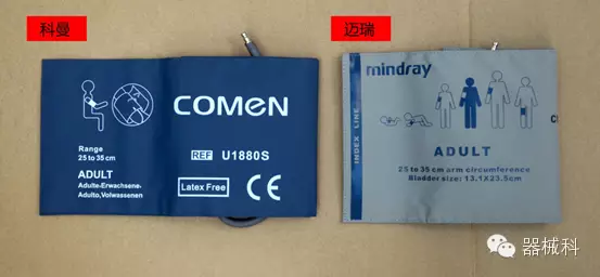 兩家都采用防水面料和薄膜氣囊。科曼顏色更深,不知道是不是因?yàn)樯钌团K。袖套看起來(lái)要厚點(diǎn),不過(guò)摸起來(lái)也一樣柔軟。邁瑞是不經(jīng)臟的白色,拿起來(lái)會(huì)發(fā)現(xiàn)更柔軟?;蛟S是深色顯得明亮,對(duì)比之下,總覺(jué)得邁瑞的袖套看起來(lái)舊舊的。