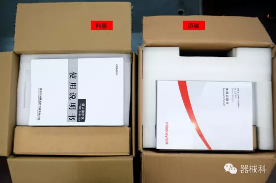 從包裝上來看,科曼NC12和邁瑞IPM12都采用了目前最好的K紙,雙層A浪,該紙的抗壓力遠(yuǎn)高于市場(chǎng)面同等材料。不論里紙、面紙,還是夾層紙,雙方的厚度都差不多,用料足。里紙面沒有明顯的凹紋,整體挺度很高??磥黼p方都很舍得花成本,以保證儀器的安全。