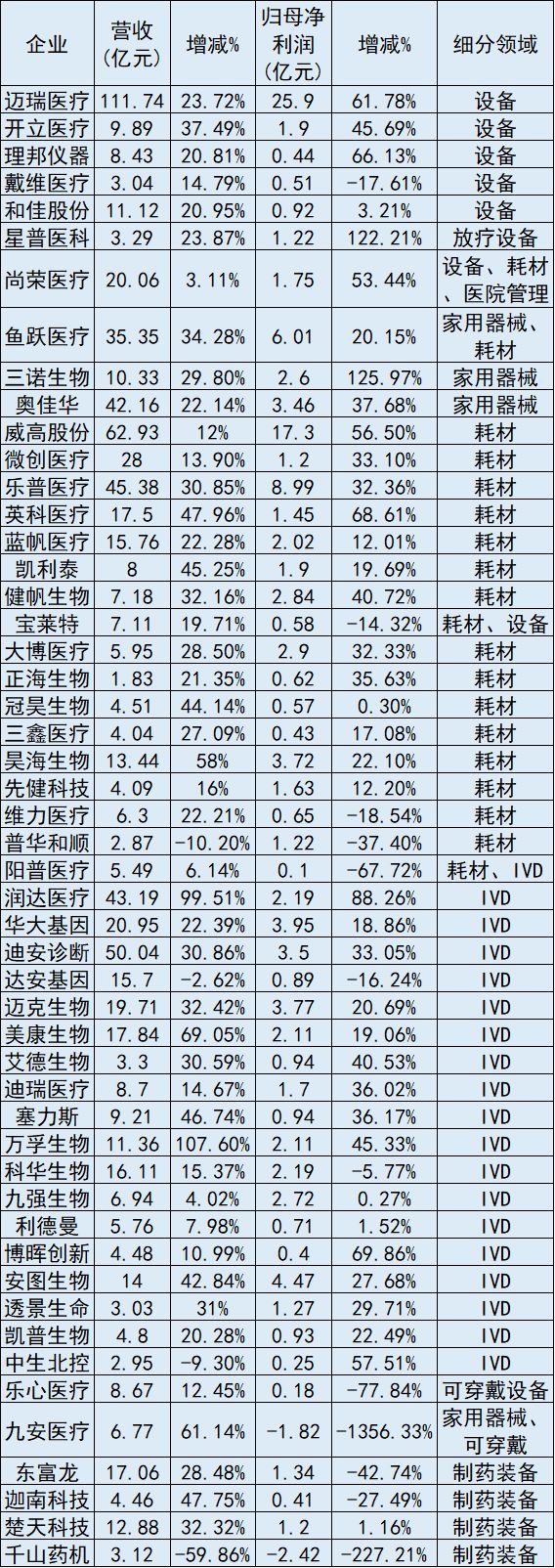 有超過9成的國(guó)內(nèi)械企均實(shí)現(xiàn)了營(yíng)收正增長(zhǎng),其中近7成的營(yíng)收同比增速還在20%以上,像潤(rùn)達(dá)醫(yī)療和萬孚生物還實(shí)現(xiàn)了營(yíng)收翻倍。