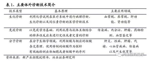 體外診斷主要分為生化診斷、免疫診斷、分子診斷、微生物診斷、凝血類診斷、組織診斷、尿液診斷、血液學(xué)和流式細(xì)胞診斷等,其中,生化診斷、免疫診斷、分子診斷是目前國(guó)內(nèi)醫(yī)療機(jī)構(gòu)的主流IVD方式。