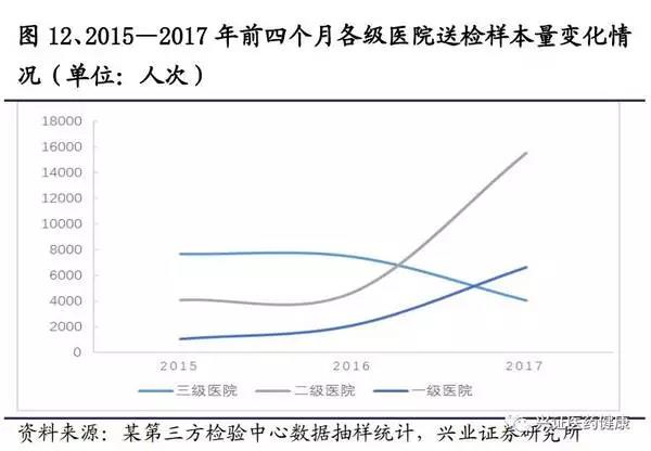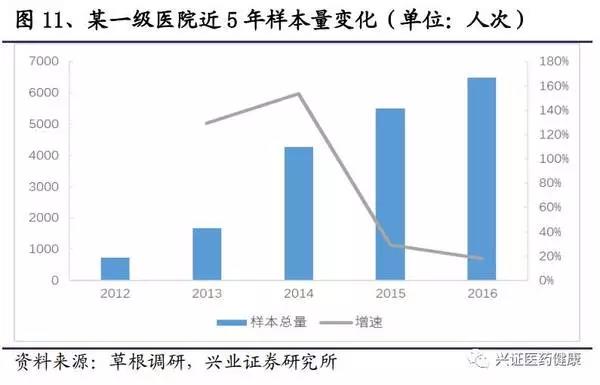 分級(jí)診療是近些年國(guó)內(nèi)醫(yī)療界的重要課題,2015年國(guó)務(wù)院發(fā)表指導(dǎo)意見(jiàn),以提高基層醫(yī)療服務(wù)能力為重點(diǎn),以常見(jiàn)病、多發(fā)病、慢性病分級(jí)診療為突破口,完善分級(jí)診療制度。在2017年兩會(huì)再次重申,在2017年底前要完成85%的覆蓋率。將來(lái),明確診斷將作為基層醫(yī)院承擔(dān)的重要任務(wù),而今基層醫(yī)院缺乏專業(yè)檢驗(yàn)人員和檢驗(yàn)設(shè)備的現(xiàn)狀,將使得近幾年基層檢驗(yàn)需求呈井噴式爆發(fā)。