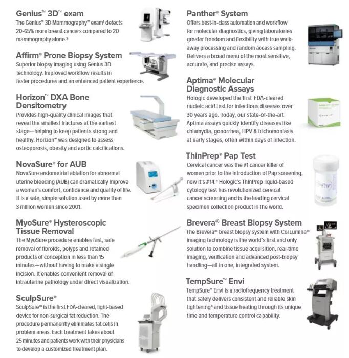 HOLOGIC(豪洛捷)是美國一家開發(fā)、生產(chǎn)和銷售診斷產(chǎn)品、醫(yī)療成像系統(tǒng)以及婦女外科檢查產(chǎn)品的公司,總部位于美國馬薩諸塞州波士頓市。豪洛捷在為女性健康服務(wù)的技術(shù)領(lǐng)域中位于世界前列,包括:乳腺癌的診斷與治療、宮頸癌篩查、產(chǎn)前檢測和骨質(zhì)疏松癥檢測。HOLOGIC公司分為:診斷、乳腺健康、婦科手術(shù)和骨骼健康四個事業(yè)部。