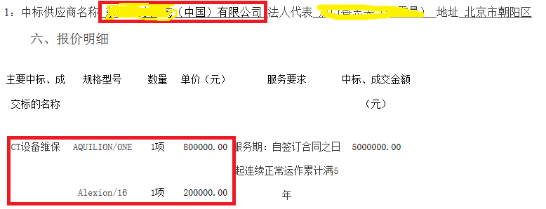 在繼續(xù)下面的話題之前,筆者強(qiáng)調(diào)兩點(diǎn),第一,上述數(shù)據(jù)來自公開的中標(biāo)文件。第二,售后服務(wù)合同與設(shè)備買賣的合同有很大的不同,客戶可能會有許多定制化的需求,比如說要求全保中包含球管的保障;再比如說要求保養(yǎng)的次數(shù)高于標(biāo)準(zhǔn)次數(shù);還有一些是帶病入保的情況;因此實(shí)際的維修合同的金額可能會有比較大的不同。